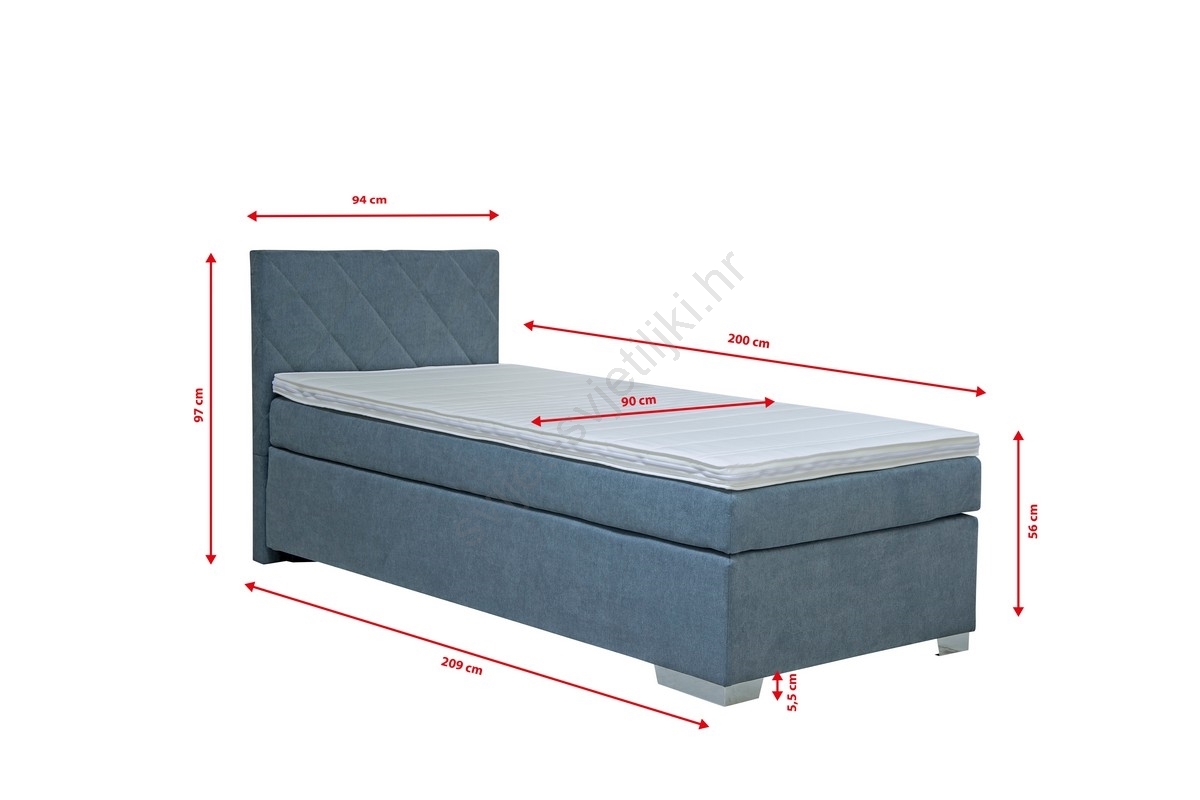 Tapecirani krevet s madracem IDA 90x200 cm plavi