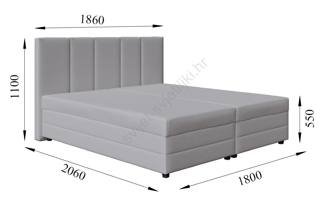 • Dimenzije ležajne površine: 180 x 200 cm.