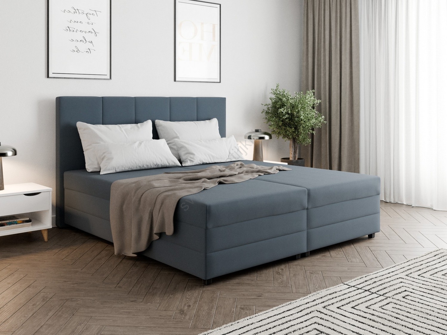 • Tapecirani bračni krevet s oprugastim madracima i visokim ravnim elegantnim uzglavljem.