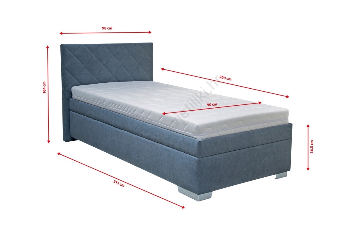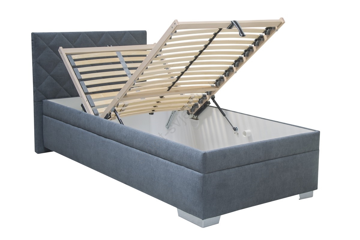 Tapecirani krevet LANA 90x200 cm s prostorom za pohranu i madracem, plavi