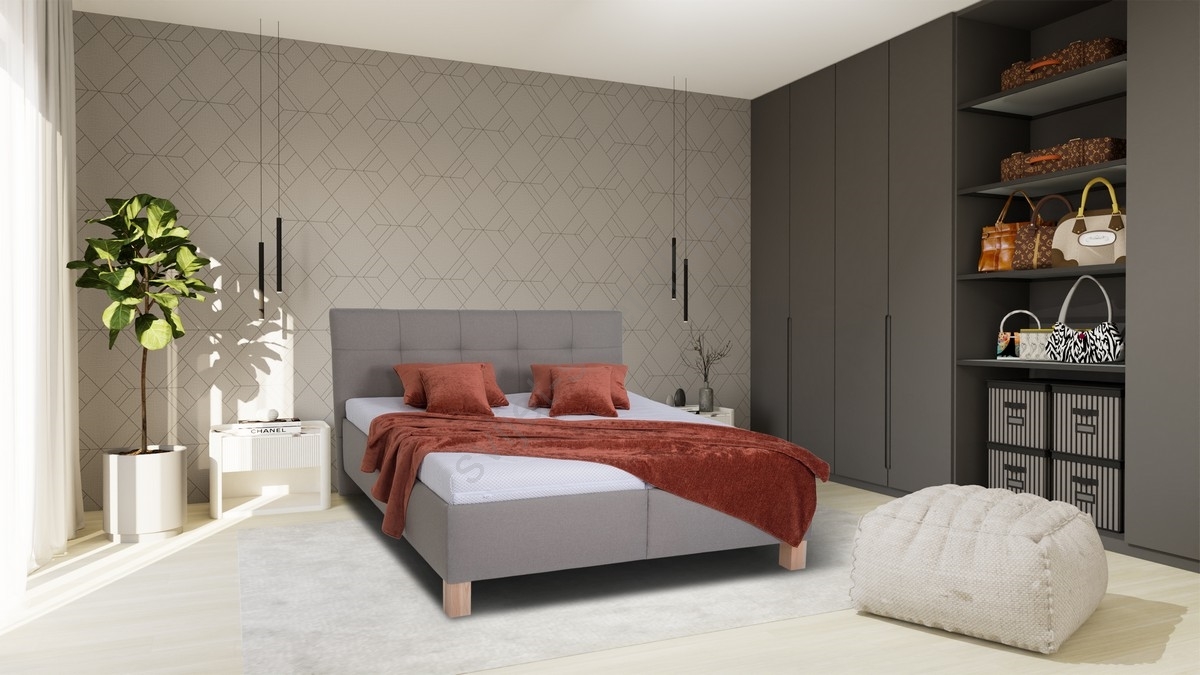 • Tapecirani krevet MARIA 180x200 cm s madracem i spremištem, siva