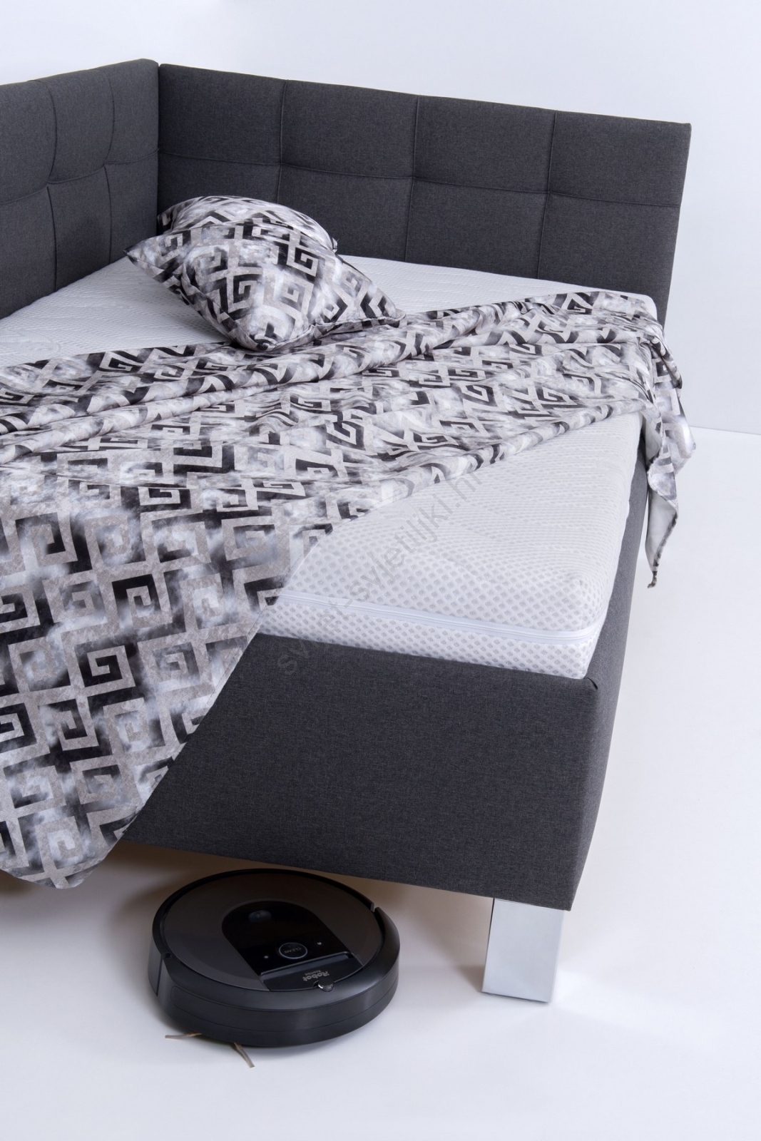 • Stabilne i dizajnerski dorađene kromirane noge visine 15 cm ne samo da naglašavaju moderan izgled kreveta, već omogućuju jednostavno čišćenje, pa i upotrebu robotskog usisavača.