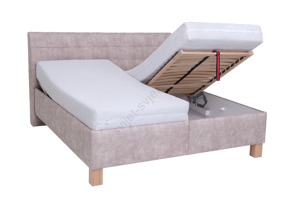 • Tapecirani krevet VIOLET 180x200 cm s madracem i prostranim spremištem, bež