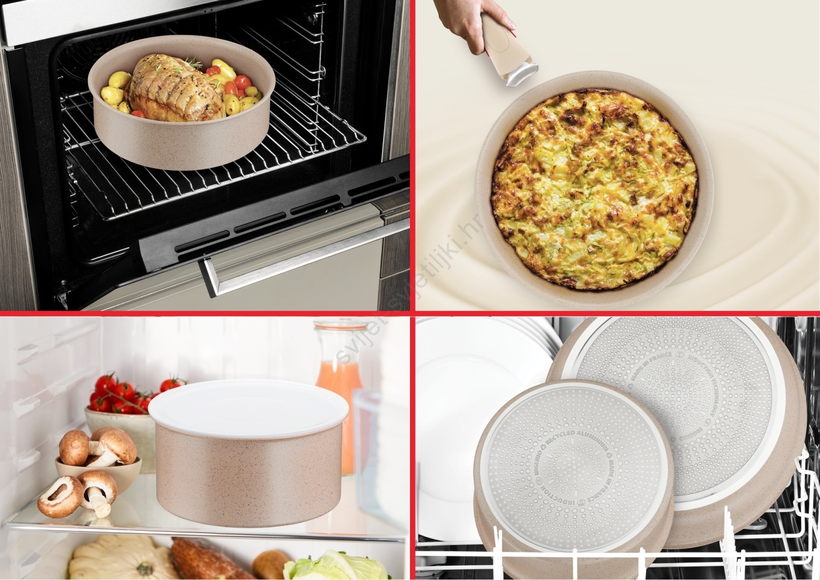• Tijelo posuđa izrađeno je od 100 % recikliranog aluminija (najmanje 80 % u proizvodu) za ekološkiju proizvodnju.