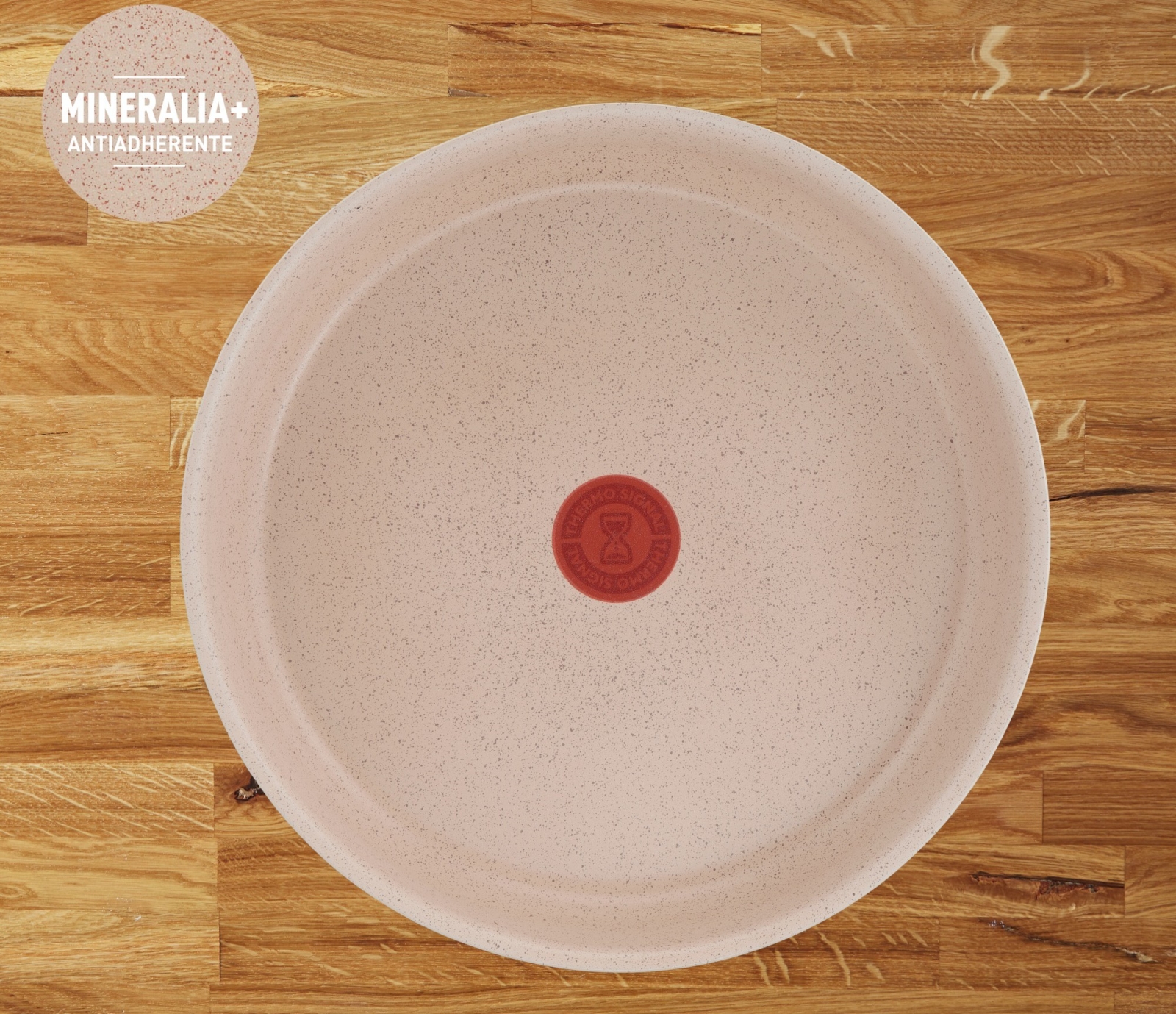 • Set ima indikator temperature Thermo-Signal™ koji vizualno pokazuje kada je tava spremna za početak kuhanja.