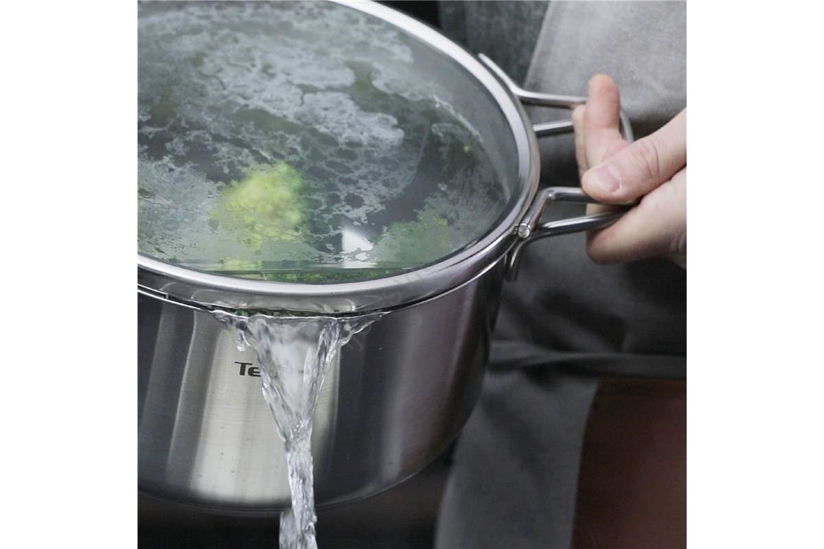 • Set sadrži: lončić 16 cm + stakleni poklopac s funkcijom cijeđenja, lonac 18 cm + stakleni poklopac s funkcijom cijeđenja, lonac 20 cm + stakleni poklopac s funkcijom cijeđenja, lonac 24 cm + stakleni poklopac s funkcijom cijeđenja, lonac za tjesteninu 22 cm + stakleni poklopac s funkcijom cijeđenja.