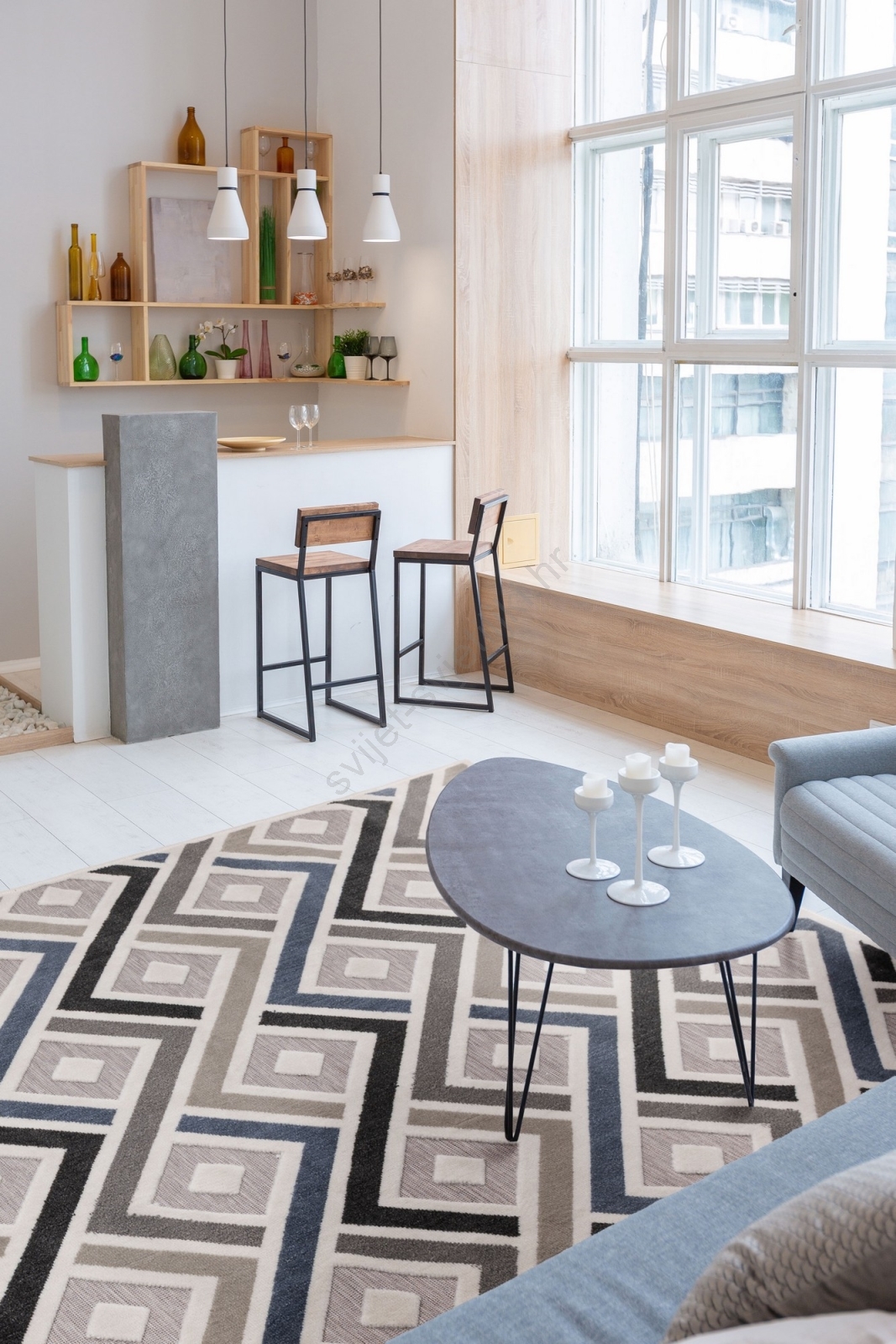 • Stilski i elegantni tepih s geometrijskim uzorcima.