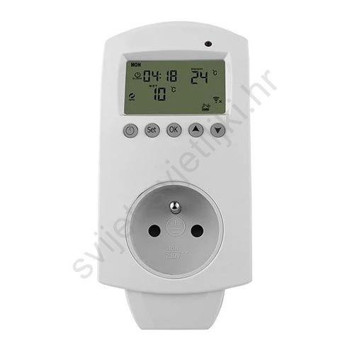 • Kontrolira napajanje priključenog uređaja putem izlazne utičnice prema odabranom programu, osiguravajući učinkovito i ugodno grijanje.