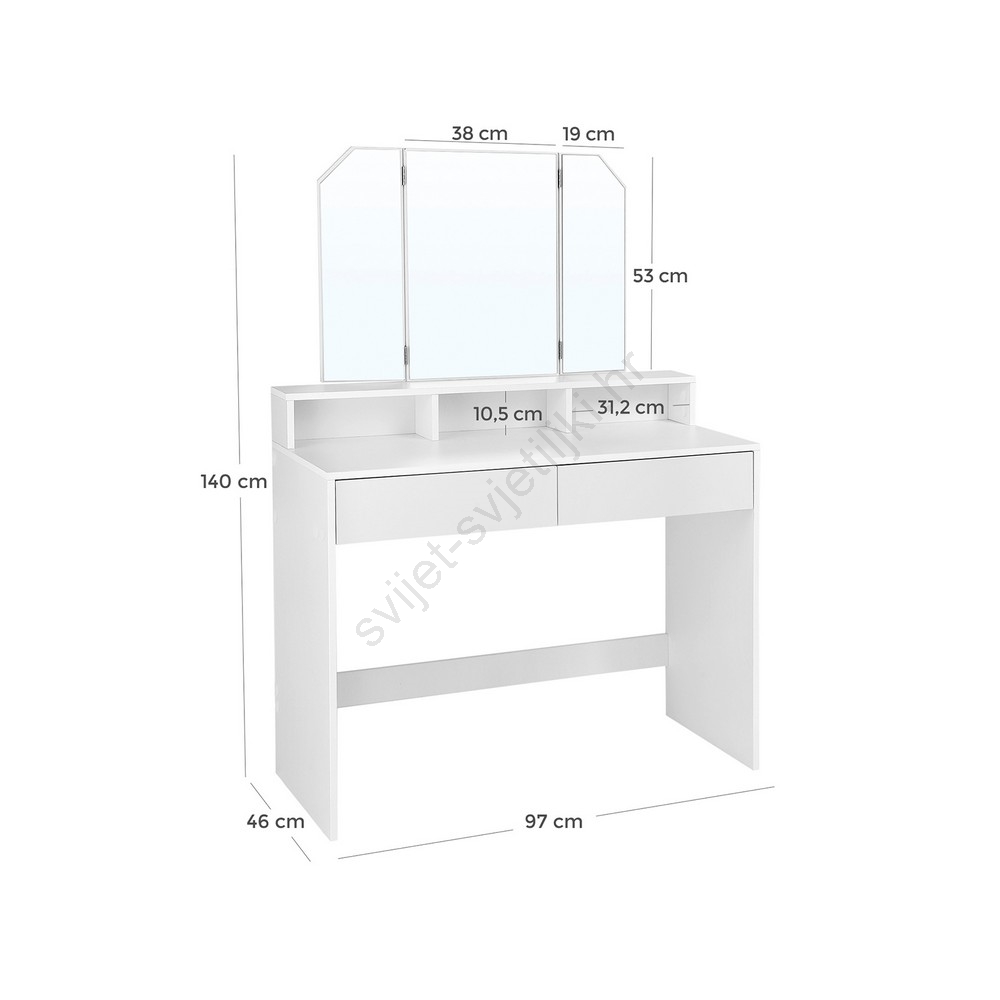 • Dvije ladice i polica iznad njih omogućuju jednostavan pristup vašoj kozmetici i šminki.