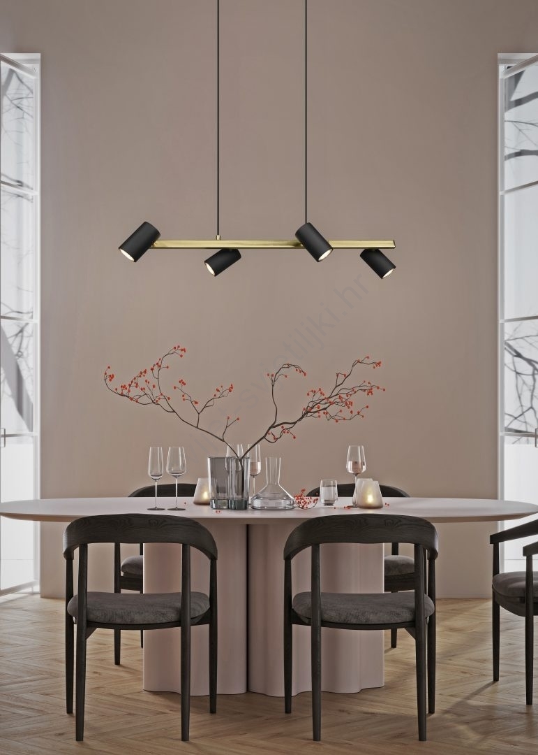 Trio - Luster na sajli MARLEY 4xGU10/35W/230V crna/zlatna karakterizira lijep i funkcionalan dizajn. Za svjetiljku je prikladna žarulja s bazom GU10. Ovdje možete kupiti i druge žarulje po povoljnim cijenama. Bit će zanimljiv dodatak Vašem domu.