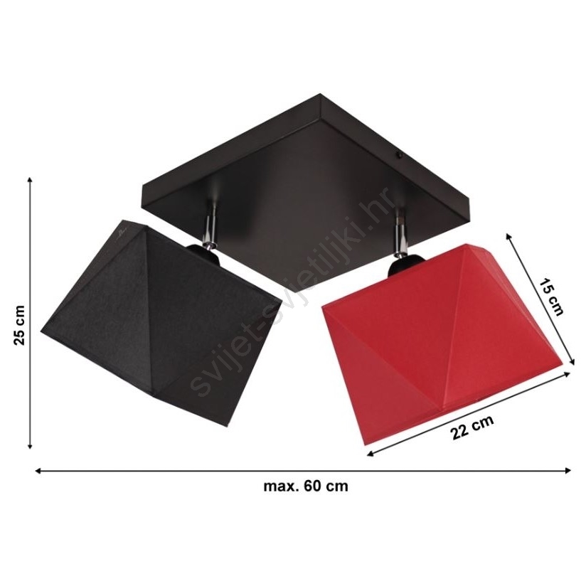 Nadgradni luster DIAMENT 2xE27/60W/230V crno crvena karakterizira lijep i funkcionalan dizajn. Za svjetiljku je prikladna žarulja s bazom E27. Ovdje možete kupiti i druge žarulje po povoljnim cijenama. Bit će zanimljiv dodatak Vašem domu.