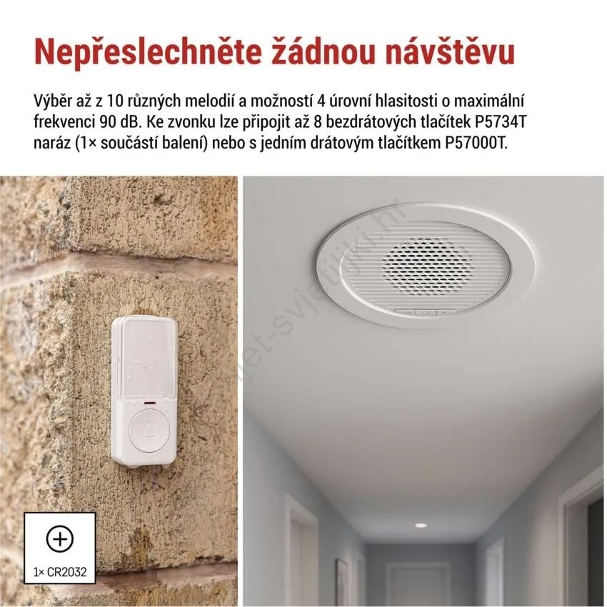 Ugradno bežično zvono 230V + 1xCR2032 bijelo