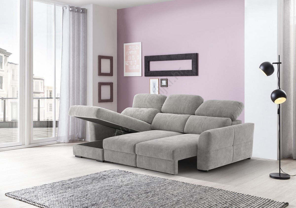 Univerzalni kutni trosjed na razvlačenje s prostorom za pohranu TRENTO, svijetlosiv
