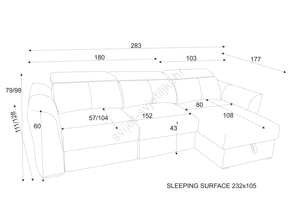 • Nakon izvlačenja oba nastavka sofa se pretvori u udoban prostor za spavanje za povremeno prenoćenje.