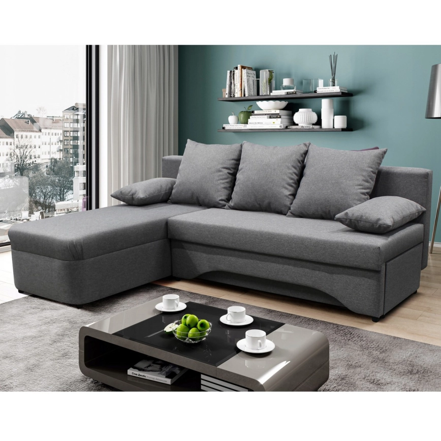 Univerzalna razvlačna kutna sjedeća garnitura s prostorom za pohranu u L ALMEIDA siva