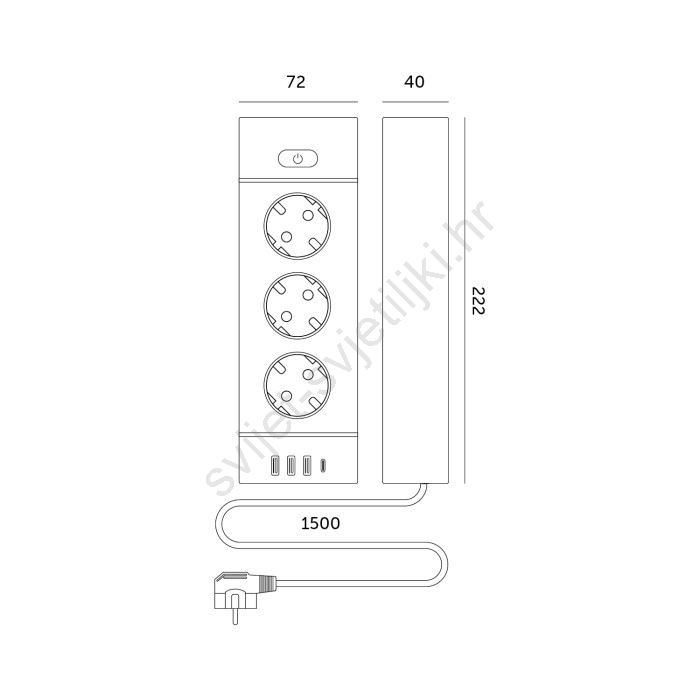 • Broj utičnica: 3 x 230V, 3 x USB-A i 1 x USB-C.