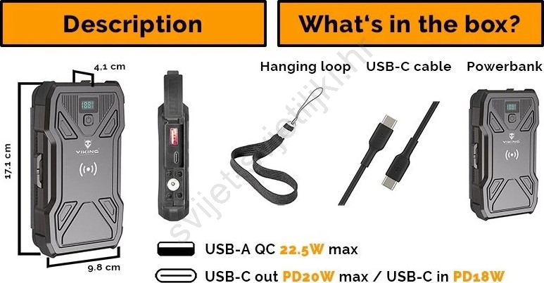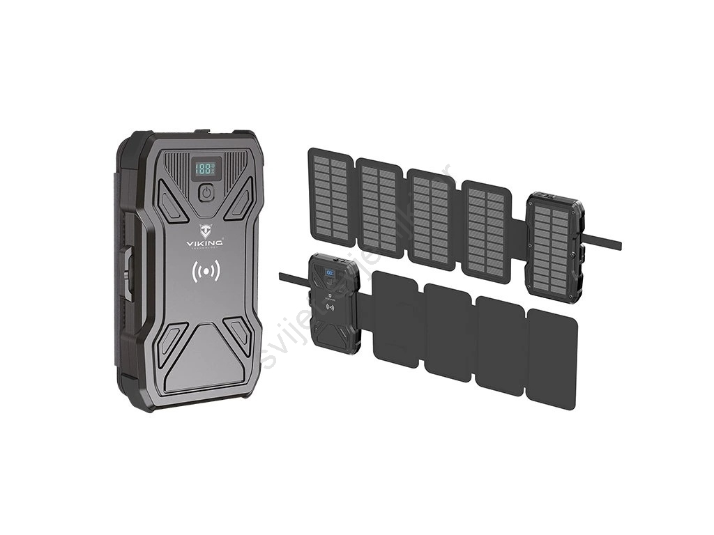 Viking-Power Bank s LED svjetiljkom, bežičnim punjenjem i solarnim panelom Power Delivery 15W/10000mAh