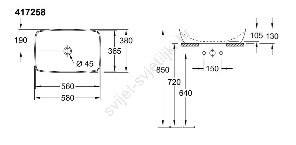 • Villeroy & Boch 417258R1 - Umivaonik na ploču ARTIS 58x38,5 cm keramika/bijela
