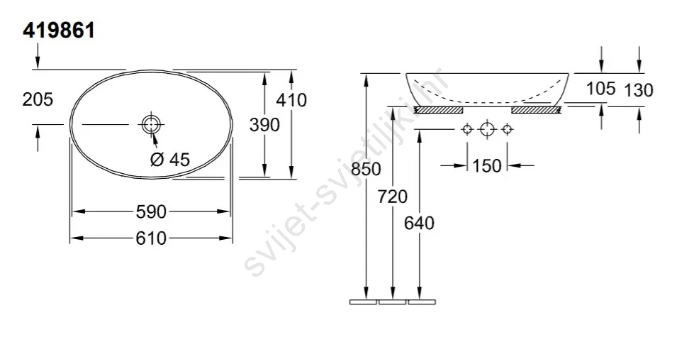 Villeroy & Boch 41986101 - Umivaonik za postavljanje na ploču ARTIS 61x41 cm keramika/bijela