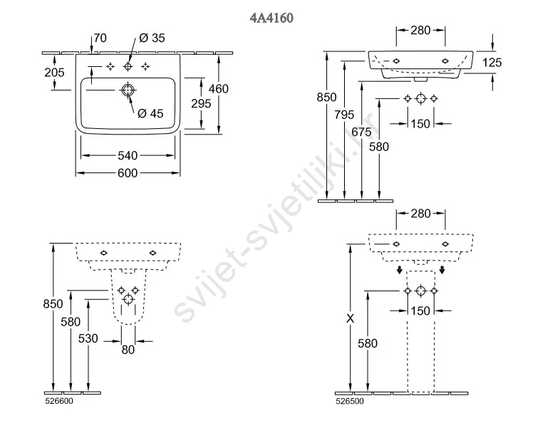 Villeroy & Boch 4A416001 - Viseći umivaonik O.NOVO 60x46 cm keramika/bijela