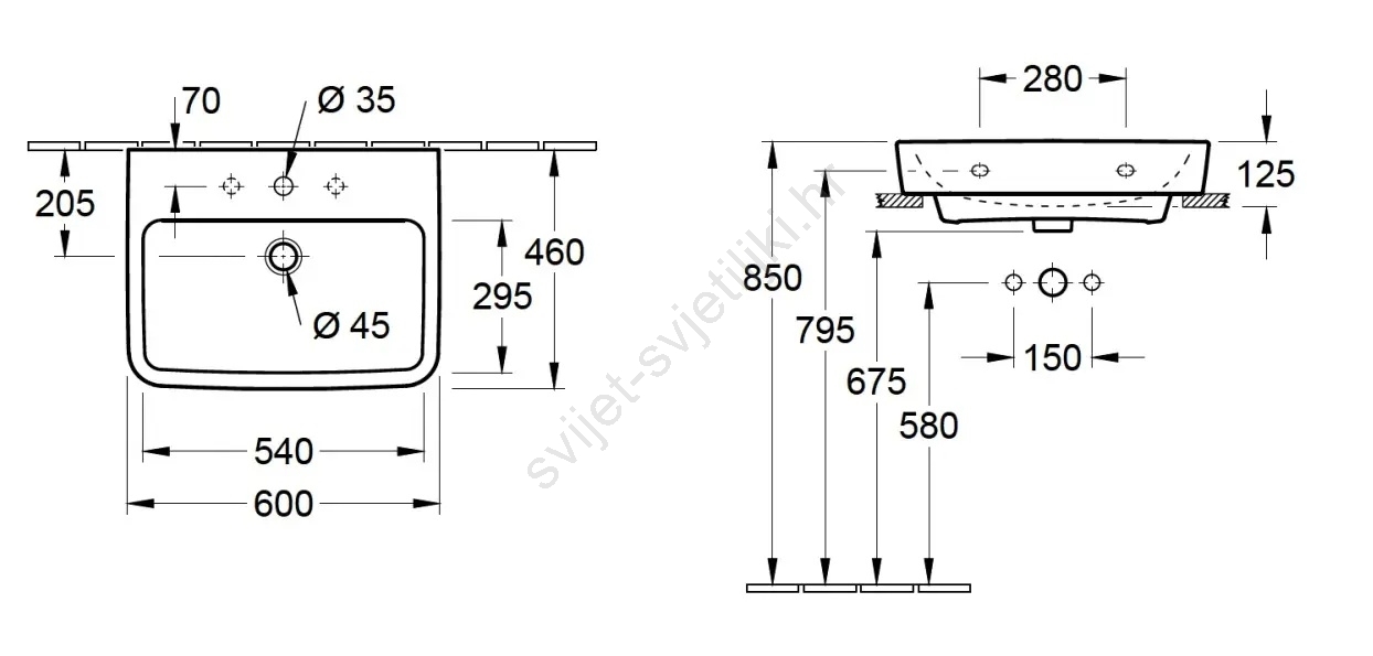 Villeroy & Boch 4A416G01 - Viseći umivaonik O.NOVO 60x46 cm keramika/bijela