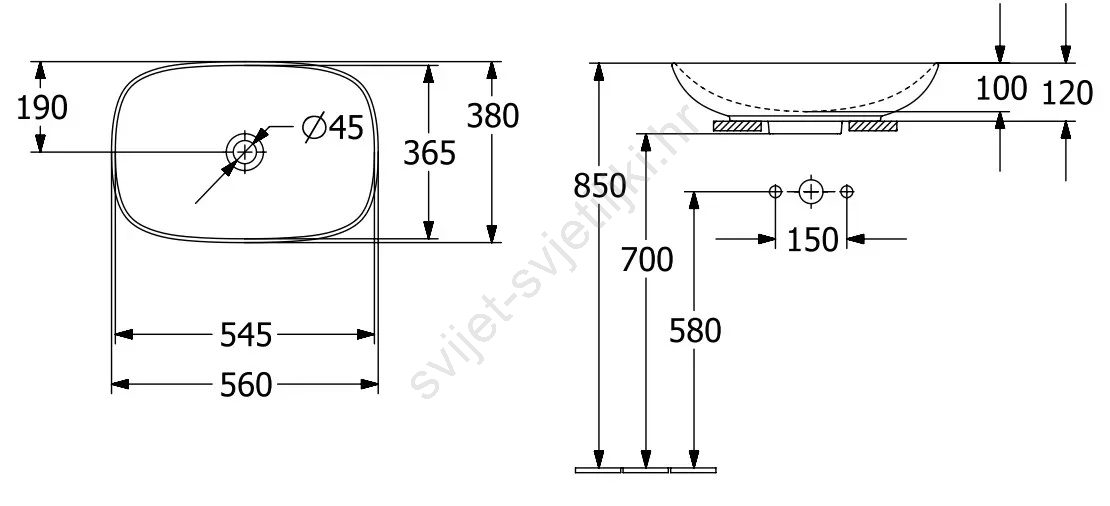 Villeroy & Boch 4A490001 - Umivaonik za ugradnju na radnu ploču LOOP&FRIENDS 56x38 cm keramika/bijela