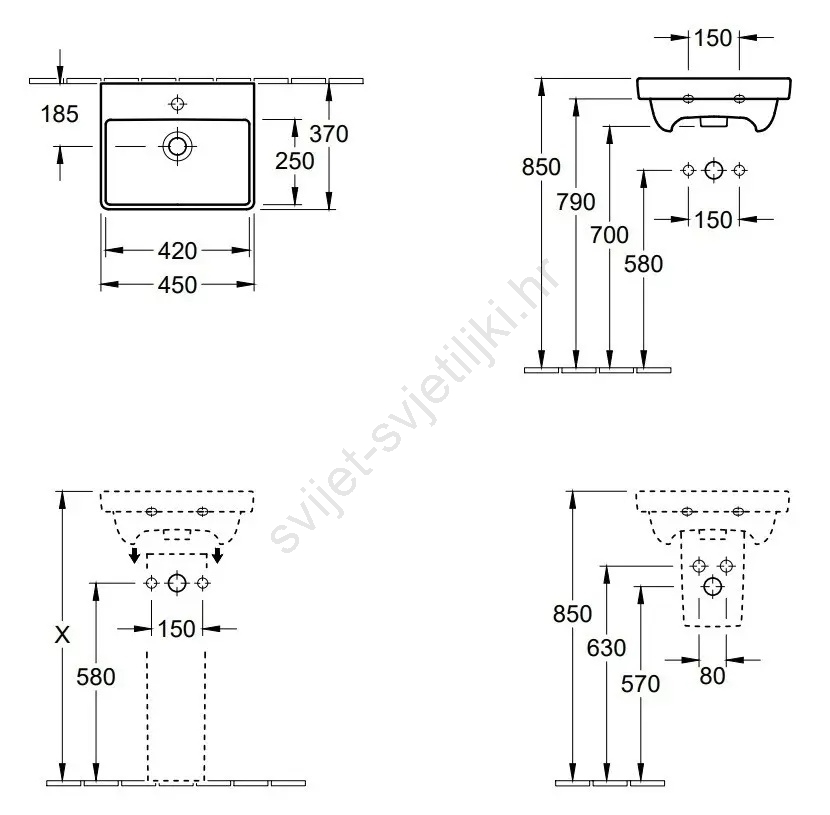 Villeroy & Boch 73584501 - Zidni umivaonik AVENTO 45x37 cm keramika/bijela