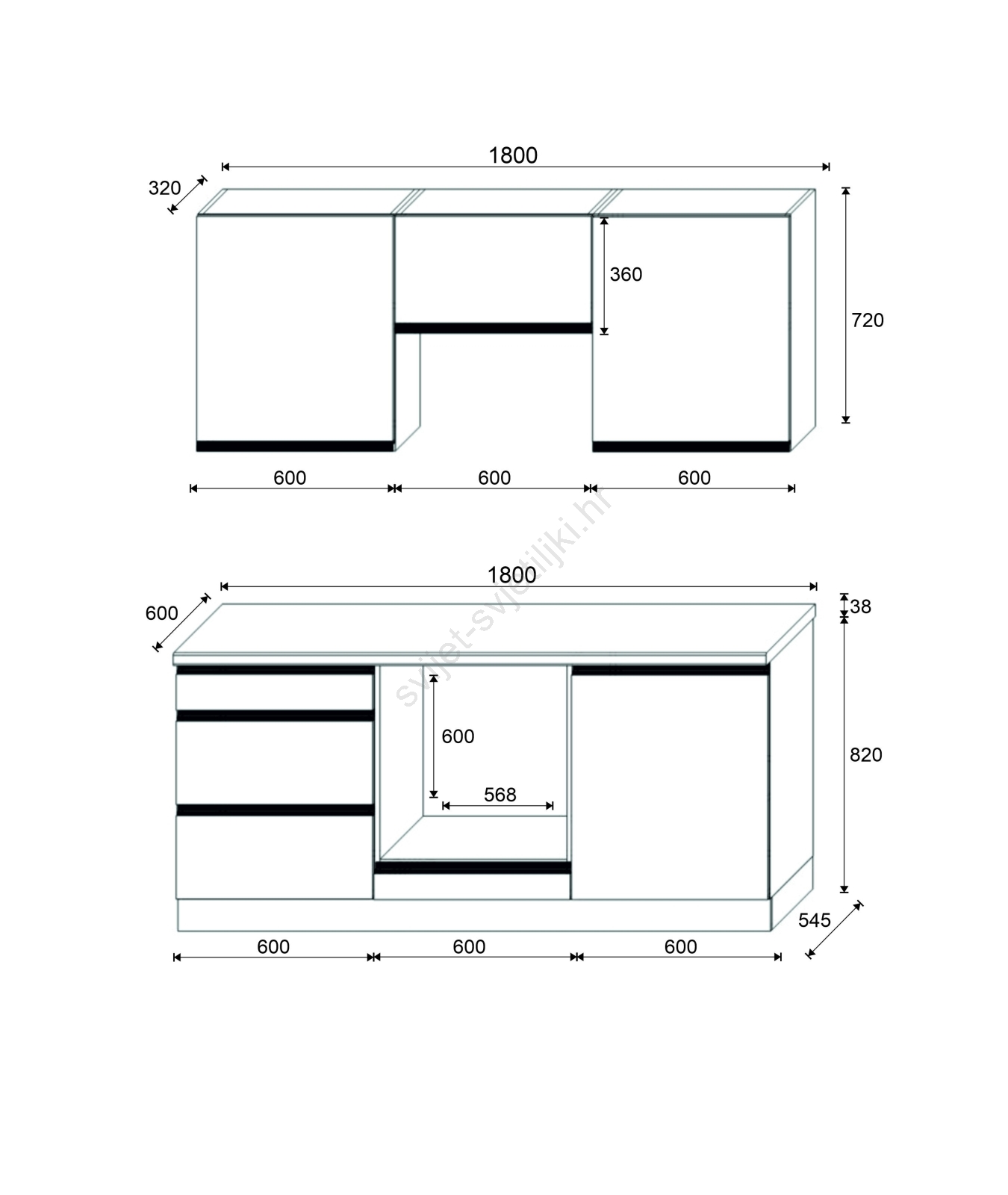 • Rasporedormarića je modularan, kuhinju možete prilagoditi prema vlastitim željama.
