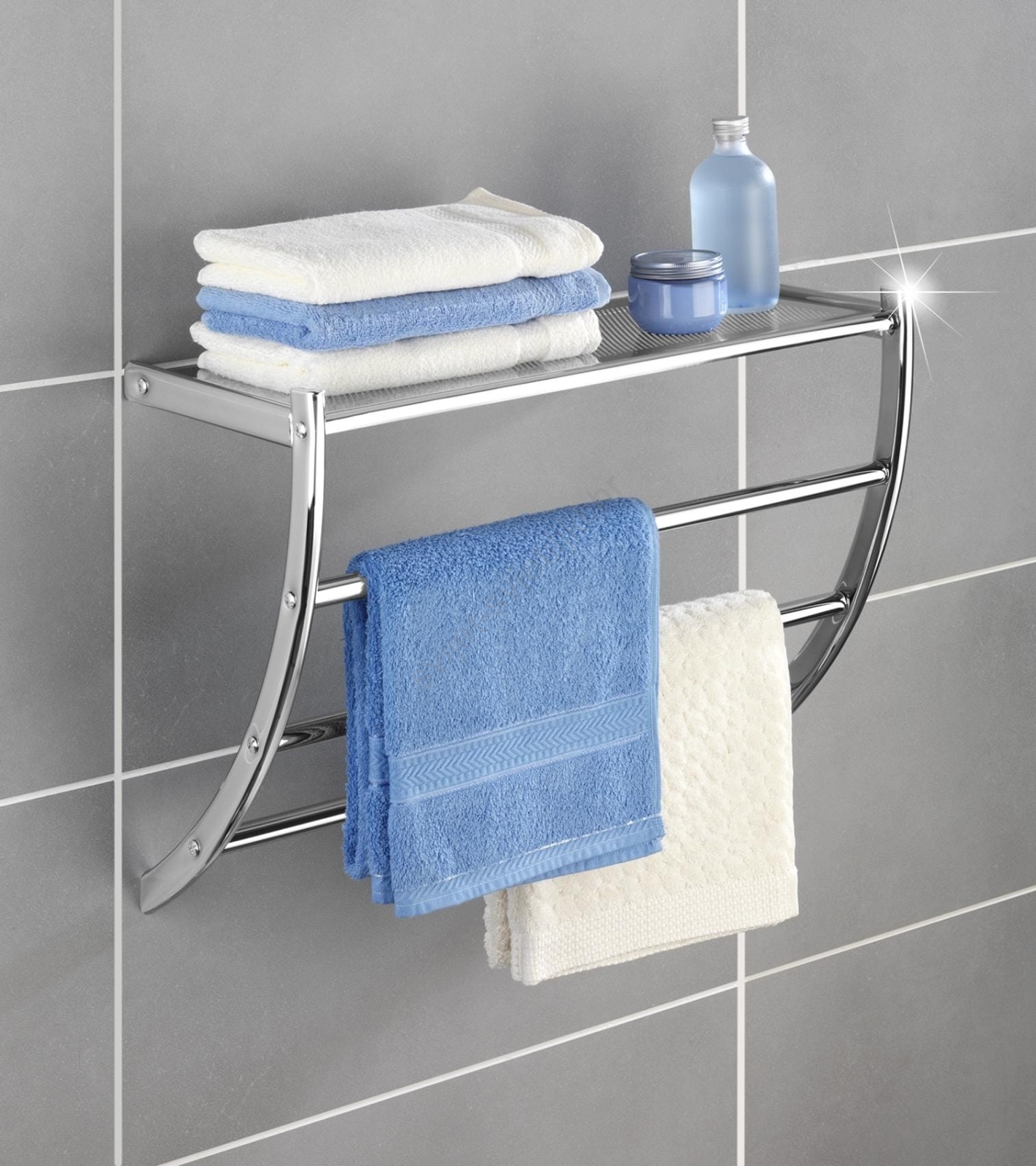 • Elegantan zidni držač za ručnike s tri ramena i policom.