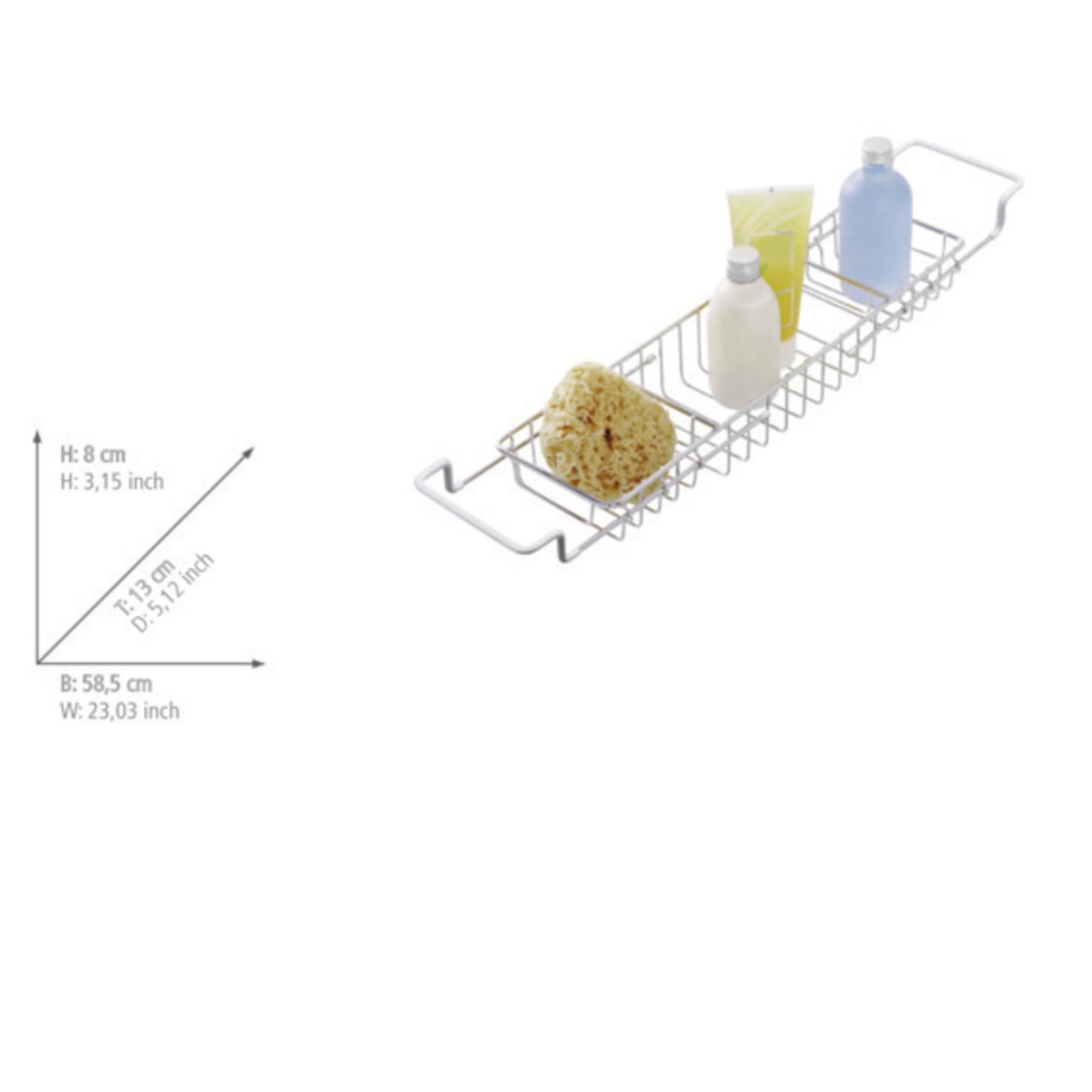 • Pruža praktičan prostor za šampon, gel za tuširanje, sapun i spužvu.