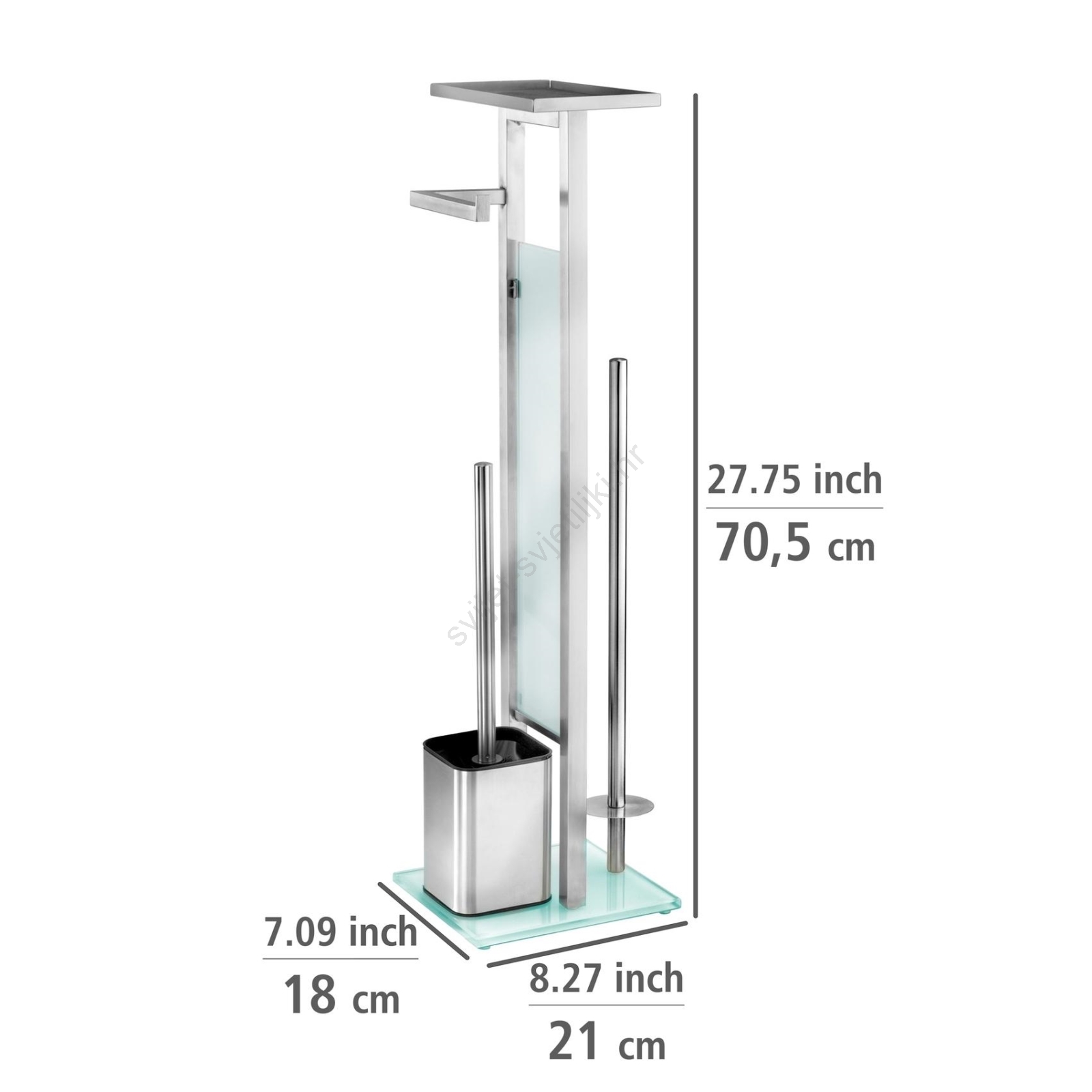 • Kombinacija 4 u 1: držač toaletnog papira, spremnik za 3 rezervne role, WC četka i praktična polica.
