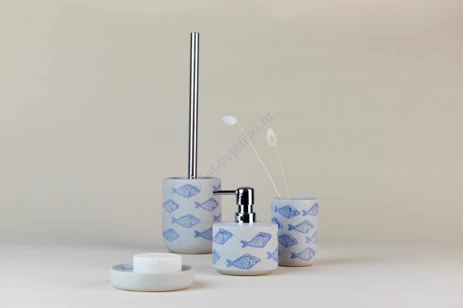 • Mat bijela površina s plavim detaljima dočarava atmosferu mora i plaže.