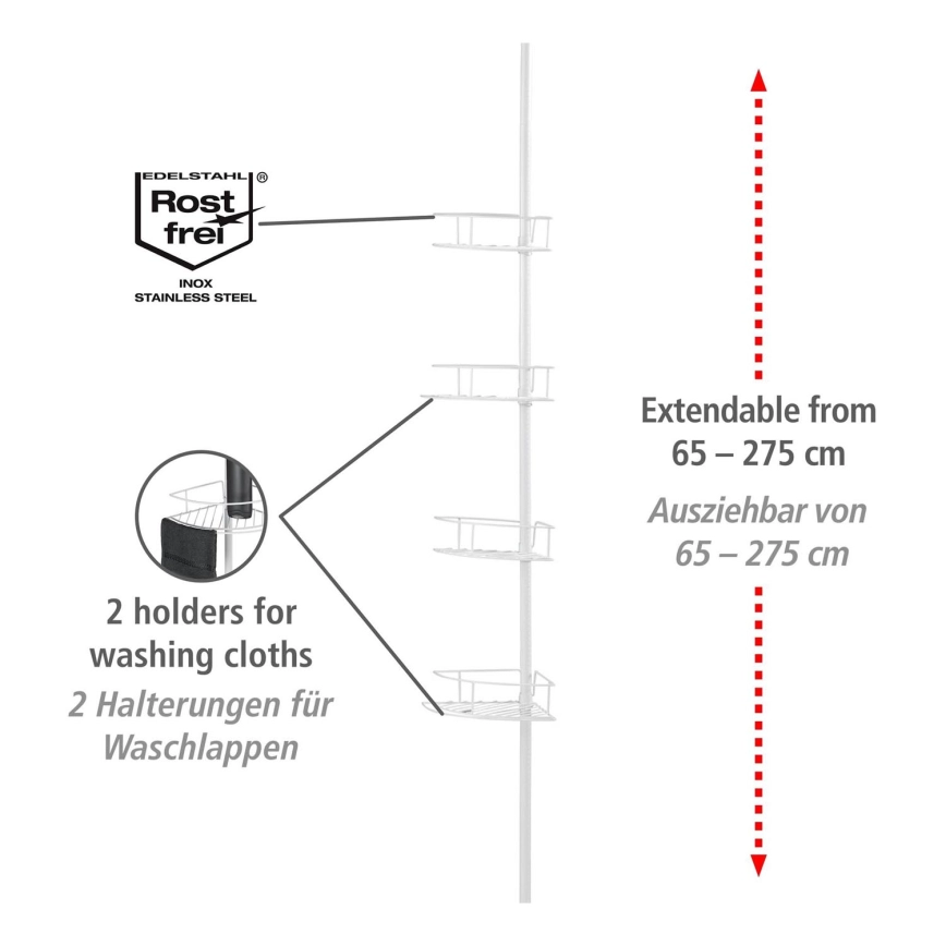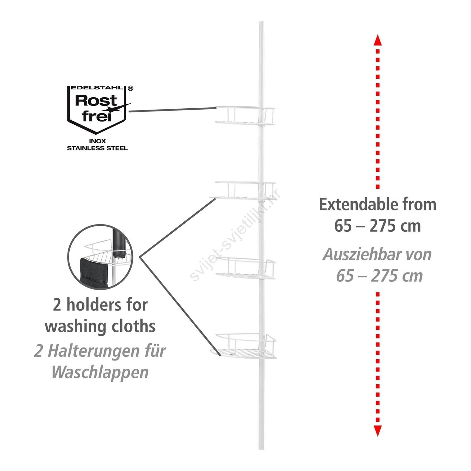 • Teleskopska kutna polica od nehrđajućeg čelika s mat bijelim premazom.