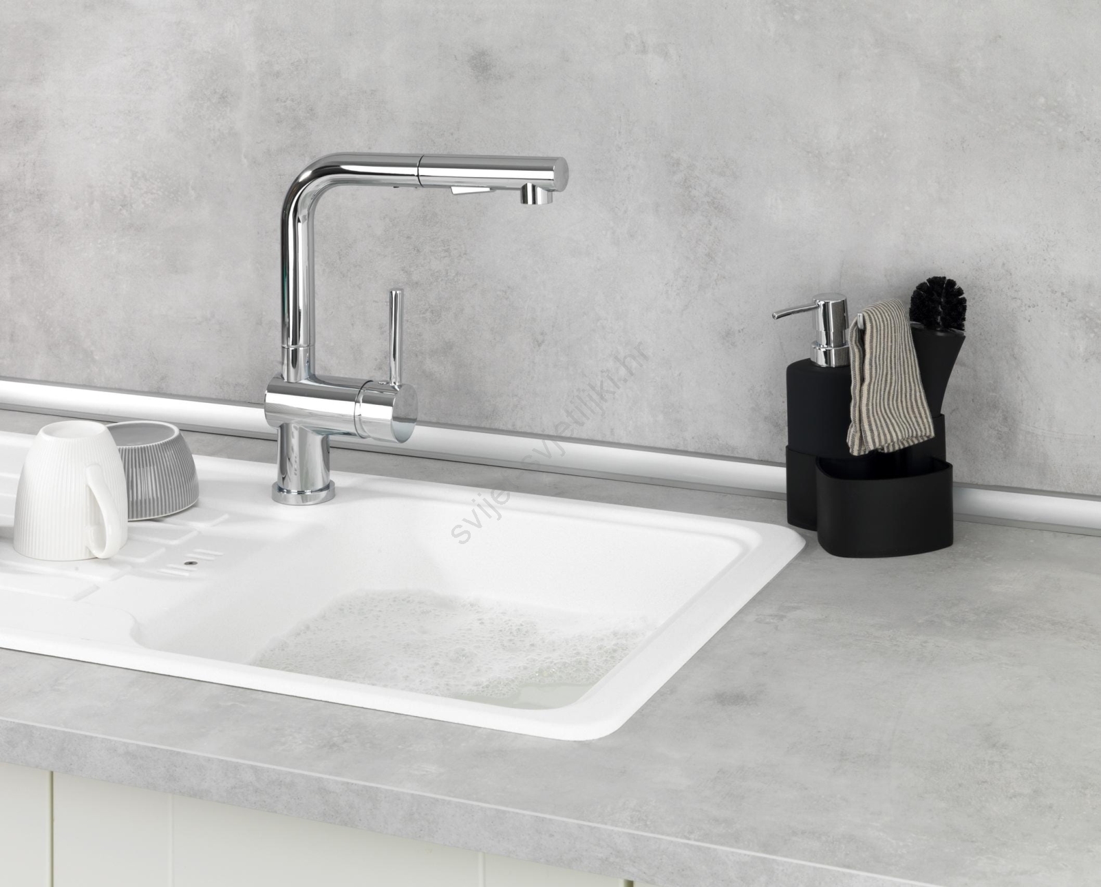 • Uključena praktična četka za posuđe u modernom dizajnu.