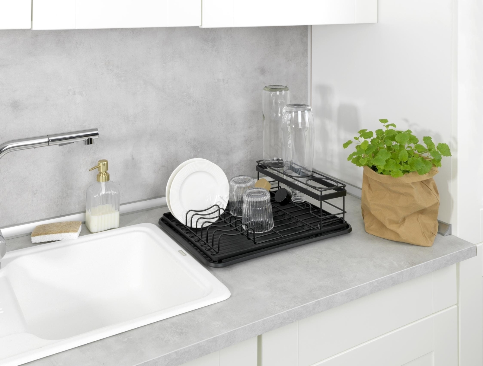 • Moderan ocjeđivač posuđa s elegantnim crnim dizajnom.