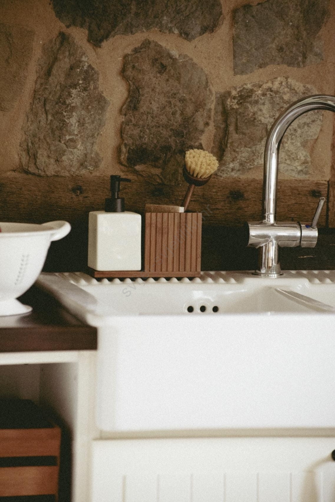 • Elegantan dozator za sredstvo za pranje posuđa s držačem za kuhinjski pribor.