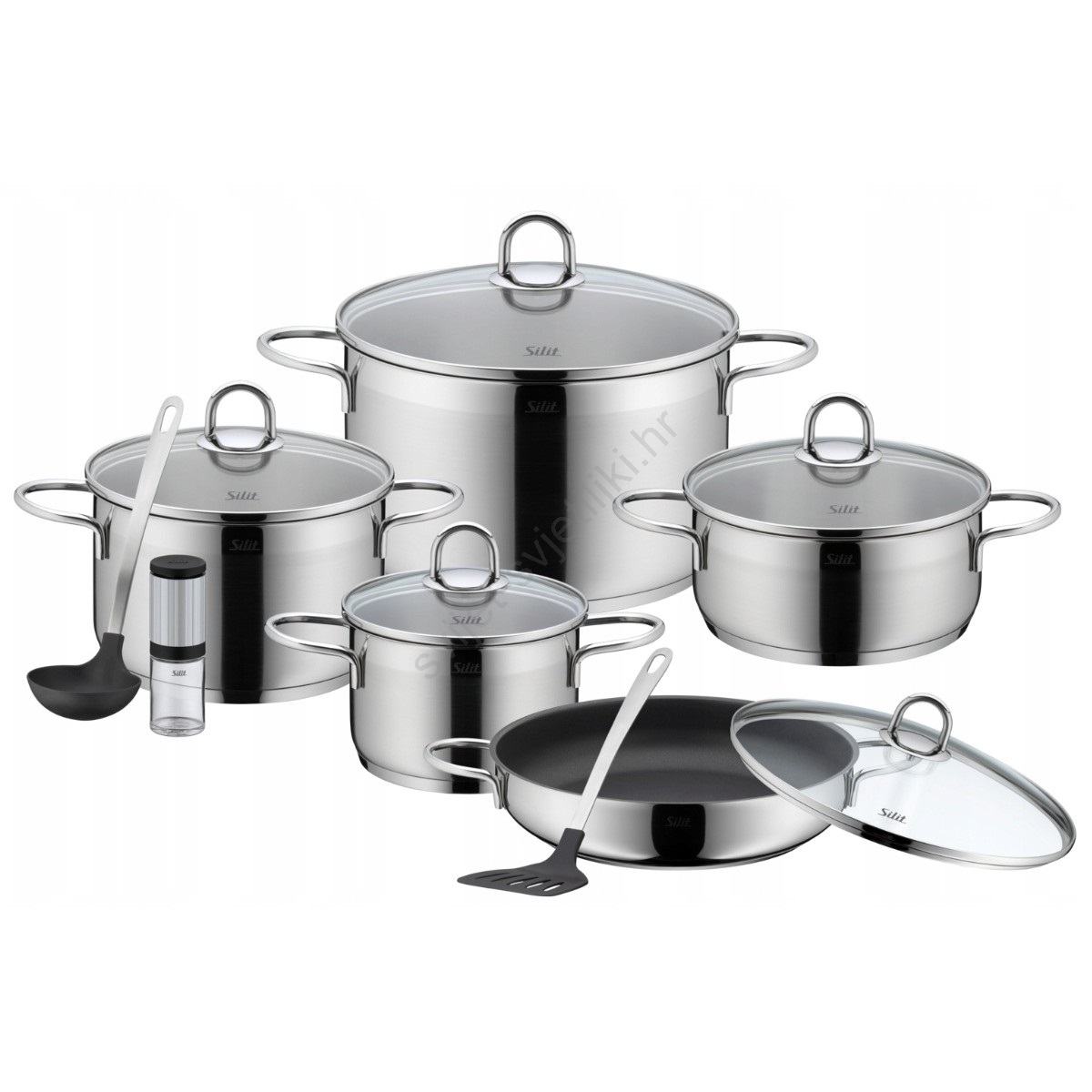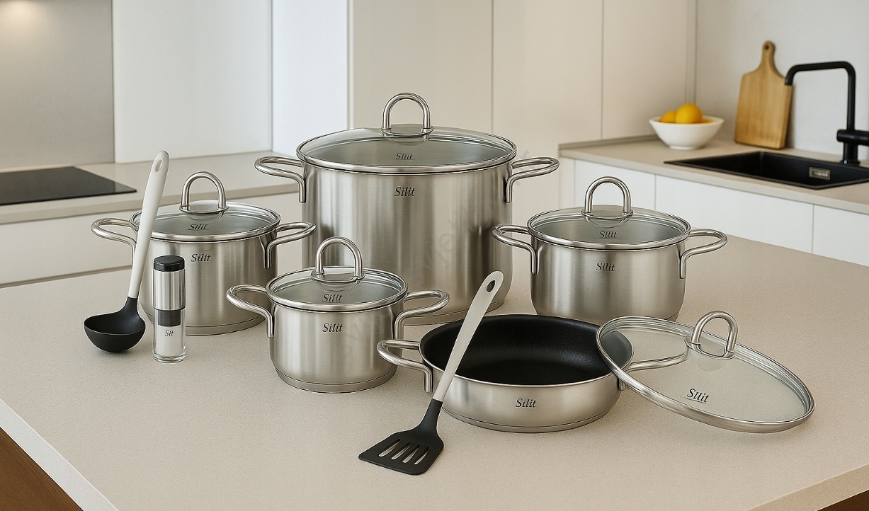 • Set lonaca i tava Silit Diamant predstavlja kompletnu opremu za kućno kuhanje na višoj razini — obuhvaća više komada prilagođenih različitim vrstama jela.