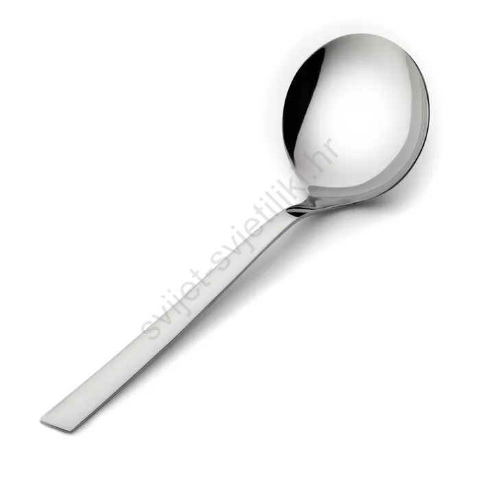 • Ima oblu zdjelicu za zahvaćanje koja omogućuje sigurno točenje u tanjure, terrine i šalice bez prolijevanja.