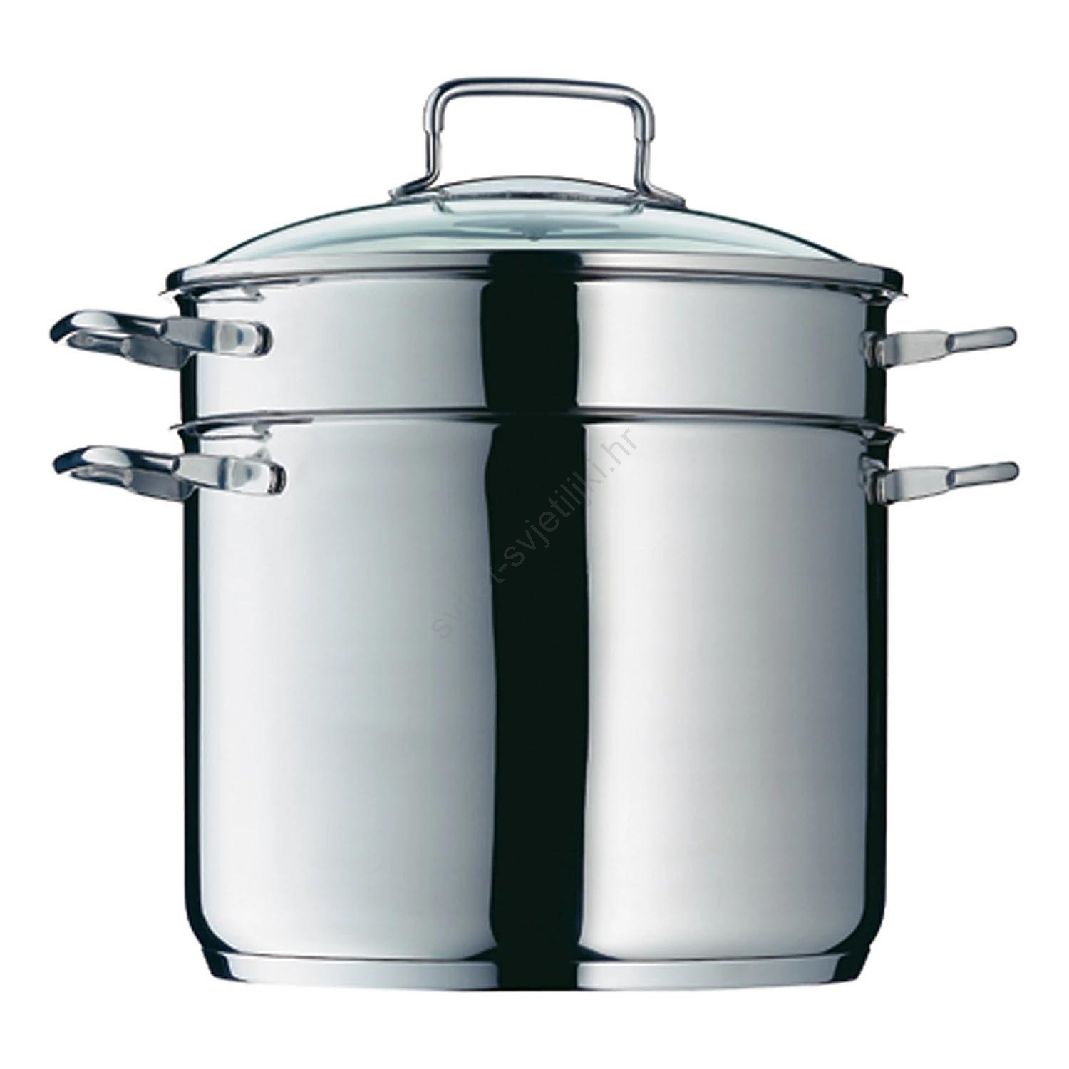 • Poseban lonac namijenjen jednostavnom kuhanju tjestenine — zahvaljujući ulošku s cjedilom voda se lako ocijedi bez potrebe za dodatnim cjedilom.