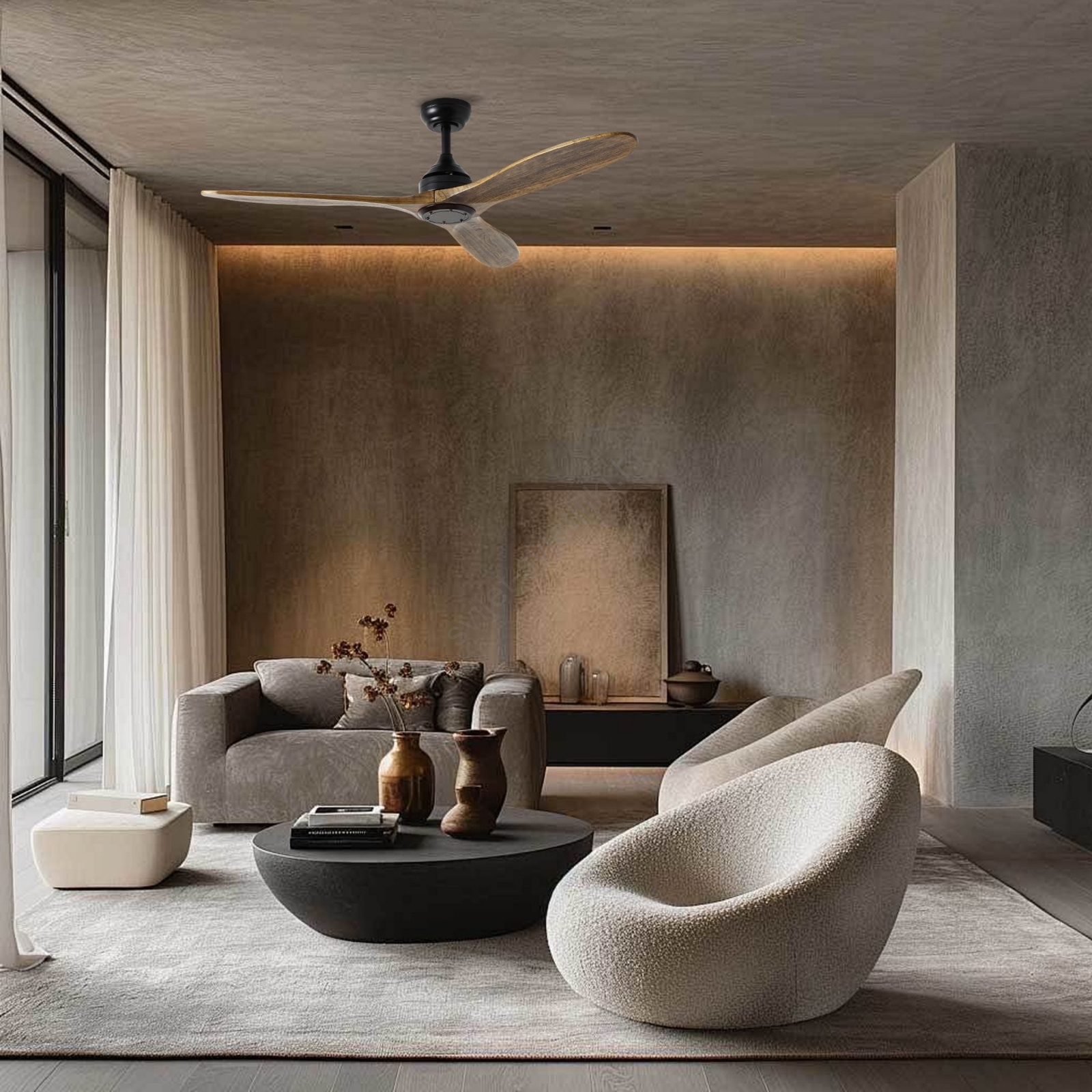 ZEVENTI - Stropni ventilator LAURIA Wi-Fi Tuya crna/hrast + daljinski upravljač