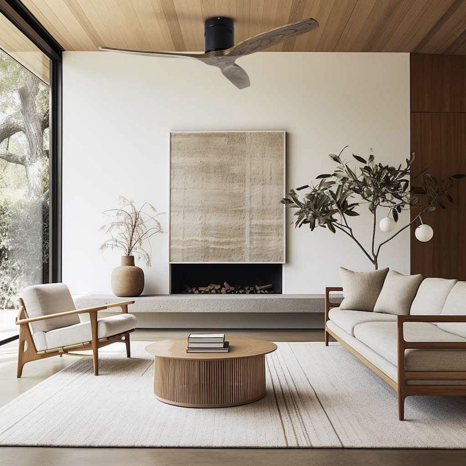 ZEVENTI - Stropni ventilator SPELLO Wi-Fi Tuya crna/hrast + daljinsko upravljanje