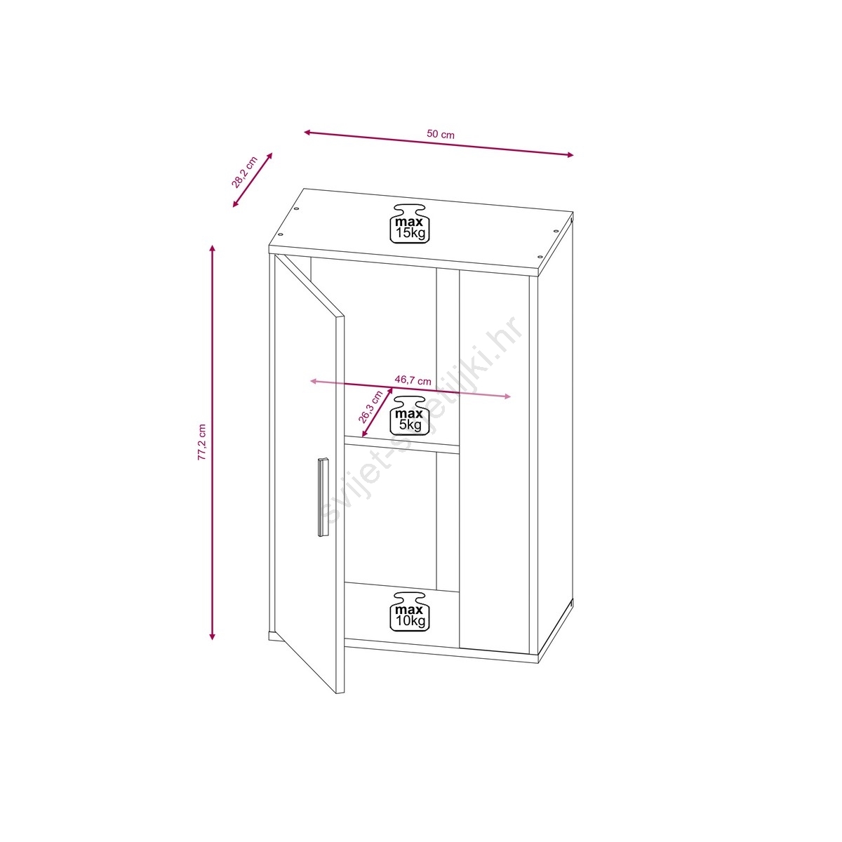 • Zidni ormarić i visoki bočni ormarić nude dodatni prostor za knjige, dekoracije i kućne potrepštine.