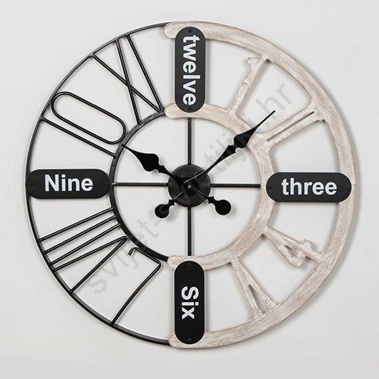 Zidni sat, 1x AA, Ø 60 cm, crna/bijela patina