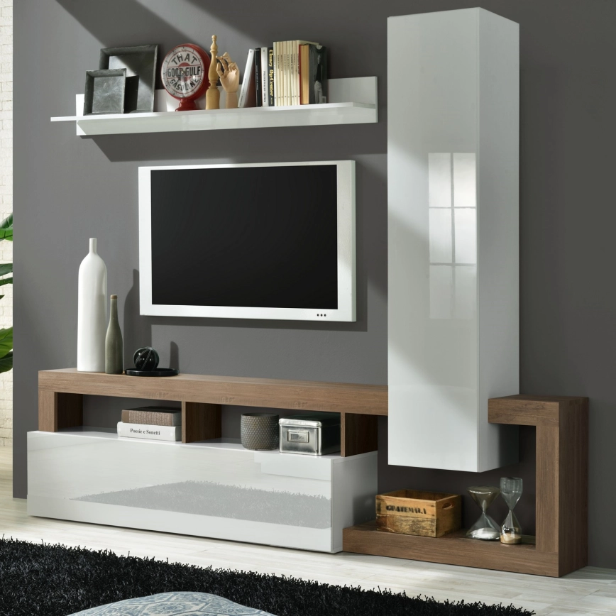 • U sklopu se nalazi prostrani televizijski ormarić s otvorenim policama za medijske uređaje i zatvorenim pretincima za skriveno spremište.